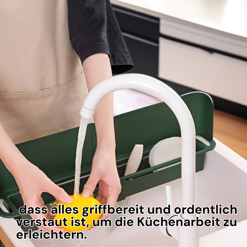 Multifunktionales erweiterbares Spülbeckenregal mit Abfluss und Spritzschutz