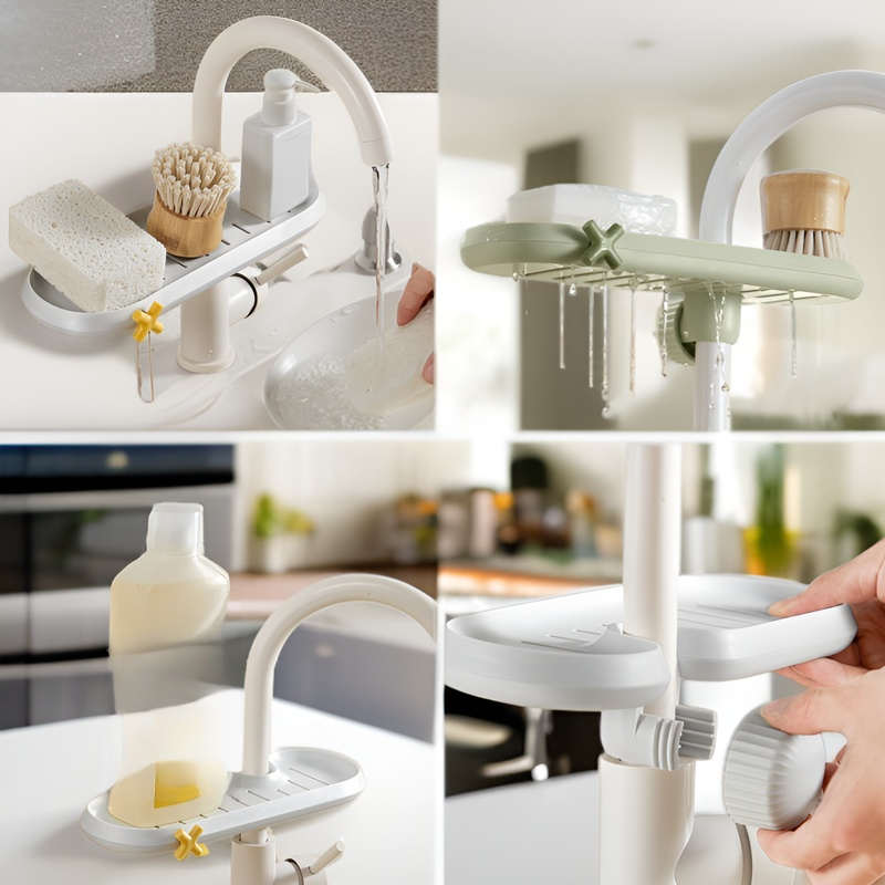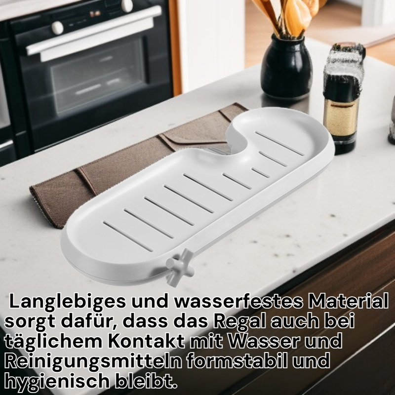 Küchenarmaturenregal für Seife, Reinigungsbürste und Spülschwamm
