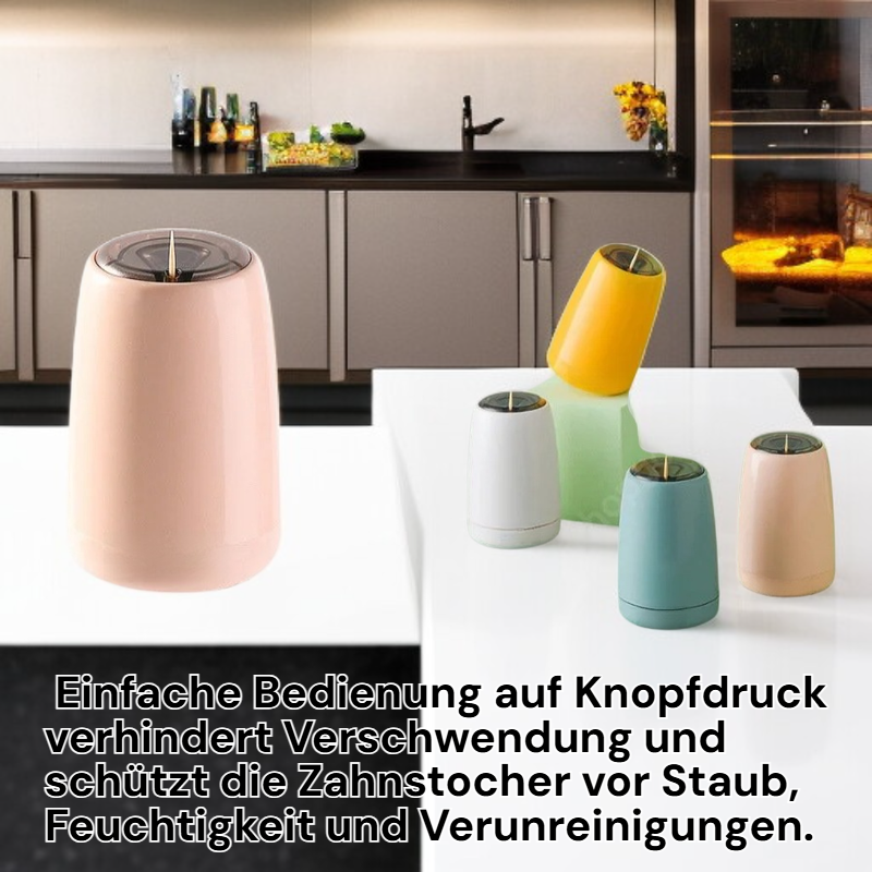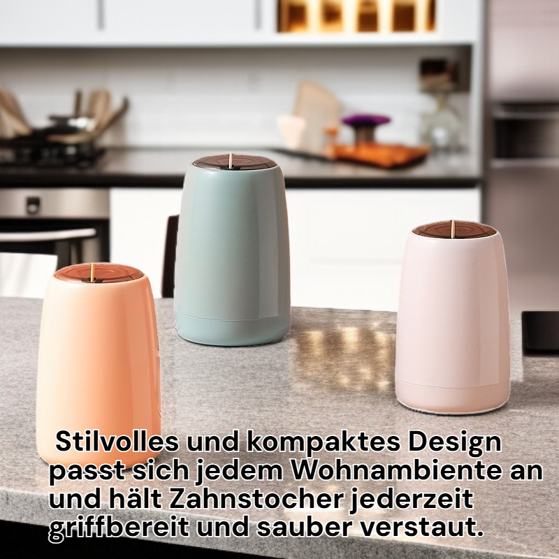 ● Automatischer Zahnstocherhalter sorgt für hygienische Entnahme, da jeder Zahnstocher einzeln ausgegeben wird und keine Berührung mit anderen stattfindet. ● Modernes und kompaktes Design passt perfekt in jede Küche oder auf den Esstisch und ist ein echter Hingucker für Ihr Zuhause. ● Einfache Bedienung auf Knopfdruck ermöglicht schnellen und komfortablen Zugriff auf Zahnstocher, ideal für Gäste und Familienmitglieder. ● Hochwertige Materialien gewährleisten Langlebigkeit und einfache Reinigung, was den Zahnstocherhalter besonders pflegeleicht macht. ● Große Kapazität für viele Zahnstocher, sodass Sie nicht ständig nachfüllen müssen und jederzeit bestens ausgestattet sind.